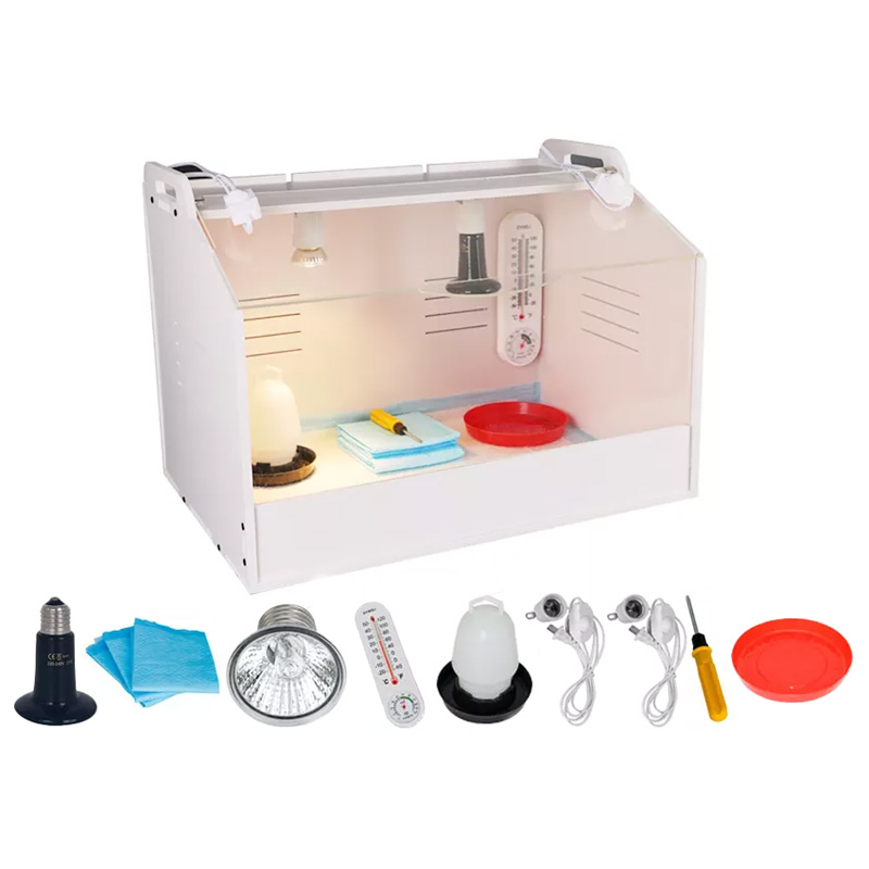 Вместительный брудер среднего размера с расширенной комплектацией. Ничего не нужно докупать: в комплекте есть два диммера и две лампы для обогрева и освещения, пеленки, точный термогигрометр, отвертка, автопоилка, поддон для корма. Идеально подходит для содержания цыплят с первых дней жизни. Через широкую прозрачную крышку и переднюю стенку можно постоянно наблюдать за ними, не открывая брудер.