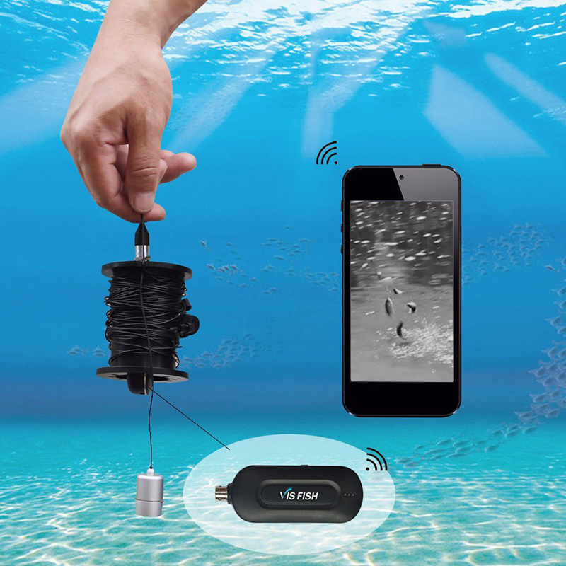 - Передача видео на смартфон. Основной блок устройства оснащен Wi-Fi-модулем, поэтому видео с камеры транслируется на мобильное устройство с ОС Android. Для этого вам нужно установить на ваш гаджет бесплатное приложение VIS FISH. Дальность связи — до 30 м.