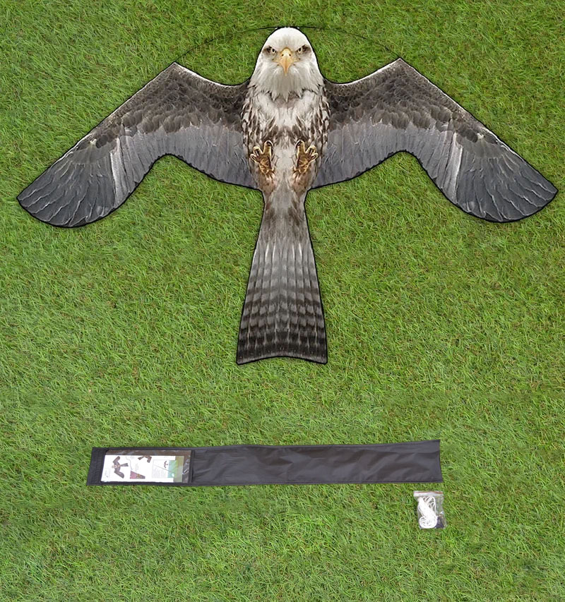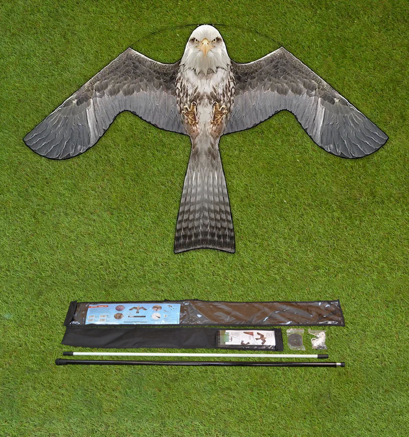 - Отпугивание большинства птиц-вредителей. Для пернатых парящий в небе "Кондор-140" абсолютно неотличим от настоящего хищника. Форма головы отпугивателя идеально копирует белоголового орлана, а остальное "туловище" — смесь особенностей сокола, ястреба и коршуна. Врожденные инстинкты не позволят птицам привыкнуть к присутствию неподалеку опасного хищника.