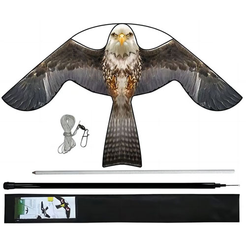 По форме и размеру очень похож на большую хищную птицу, парящую в небе над вашим участком. Отпугнет всех пернатых вредителей и сохранит ваш урожай. Устанавливается на гибкий шест или телескопический флагшток длиной 4, 7 или 9 метров. Выдерживает порывы ветра до 20 м/с.