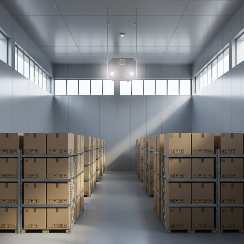 Отпугиватель оснащен встроенными часами и программируемым таймером включения/выключения, не имеет аналогов по площади покрытия, что позволяет использовать его в больших складах магазинов, причем на максимальной мощности (сам включится, когда сотрудники уйдут домой). Имеет 4 режима работы, один из которых бесшумный.