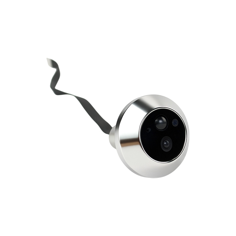 Оснащен камерой, по виду ничем не отличающейся от обычного оптического глазка. Обеспечивает высокое качество картинки с хорошей детализацией и широкий угол обзора в 150°.